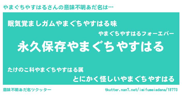 | ヘコむあだ名 | 『やまぐちやすはる(苦笑)』『やま太郎』 |