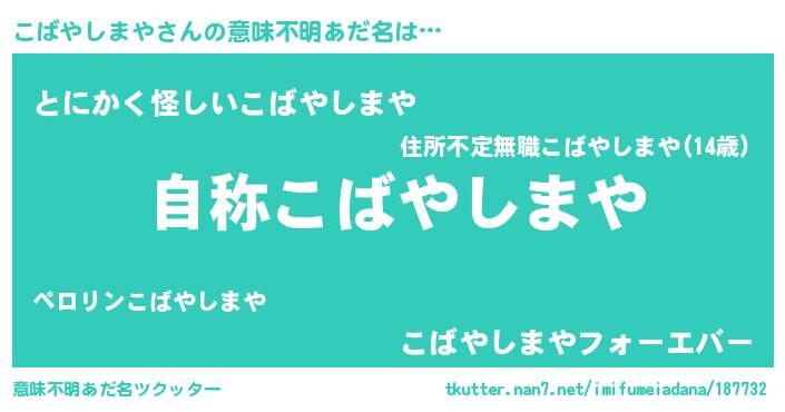 | 欧米人風あだ名 | 『ケンブリッジこばやしまや』 |