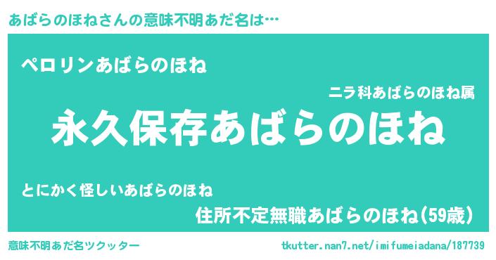 | ヒーロー風カッコイイあだ名 | 『ネオアバラノホネ』『仮面アバダー』 |