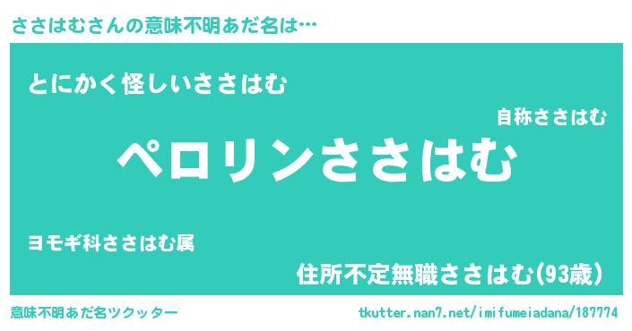 | 胡散臭い通販商品みたいなあだ名 | 『モテモテ間違いなし水晶球…その名も「ささはむ」』 |