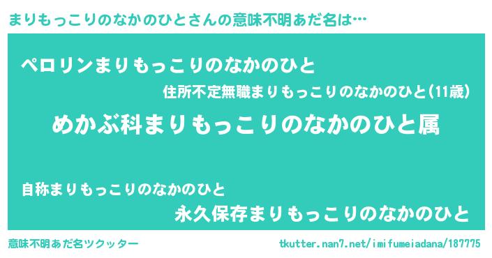| 欧米人風あだ名 | 『トリンドルまりもっこりのなかのひと』 |