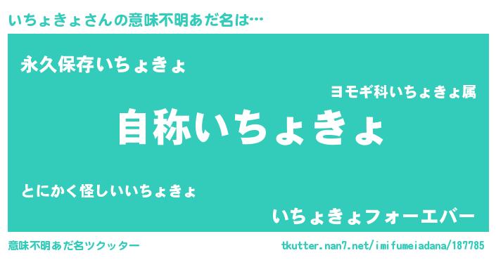 | 男性向けラノベタイトル風あだ名 | 『Re:いちょきょから始める異世界生活』 |