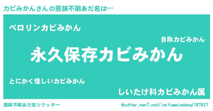 | 男性向けラノベタイトル風あだ名 | 『うちのカビみかんが世界を掌握している!』 |