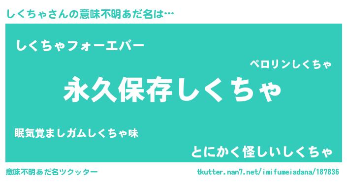 | 胡散臭い通販商品みたいなあだ名 | 『絶対に幸福をもたらす水素水…その名も「しくちゃ」』 |