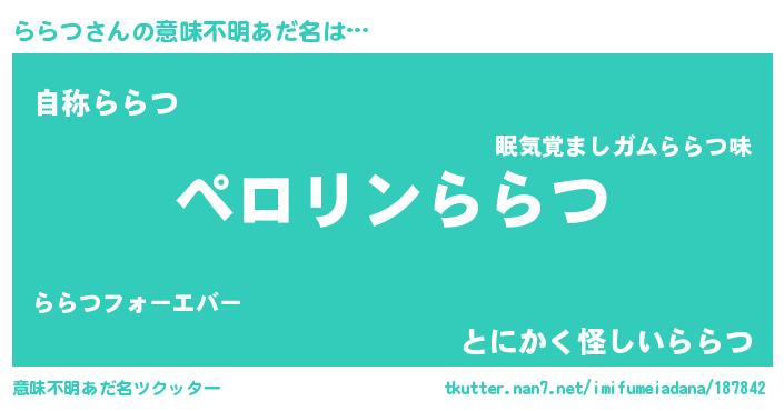 | ヒーロー風カッコイイあだ名 | 『スーパーララツ』『究極戦士ララツ』 |