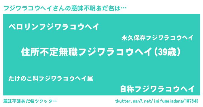 | ヒーロー風カッコイイあだ名 | 『仮面フジダー』『ネオフジワラコウヘイ』 |