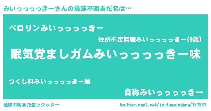 | ヒーロー風カッコイイあだ名 | 『慈愛の使者みいっっっっきー』 |