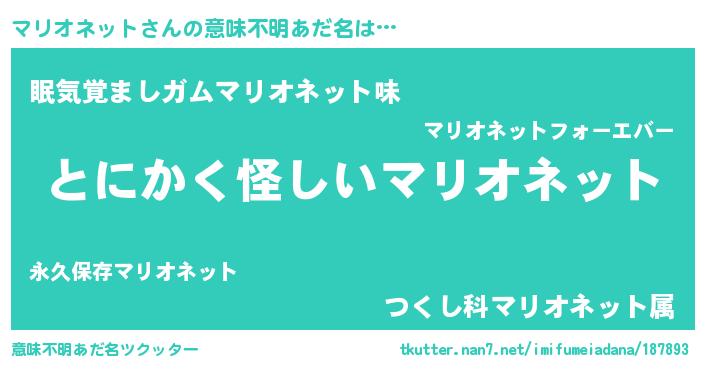| 胡散臭い通販商品みたいなあだ名 | 『伝統あるサプリメント…その名も「マリオネット」』 |