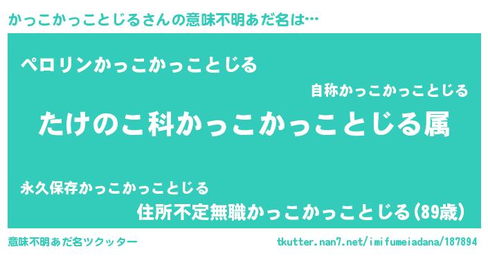 男性向けラノベタイトル風あだ名 | 『転生したらかっこかっことじるだった件』 |