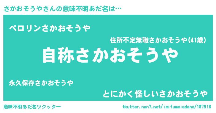 | 欧米人風あだ名 | 『ケンブリッジさかおそうや』 |
