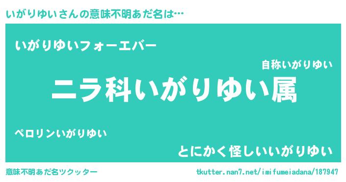 | 欧米人風あだ名 | 『トリンドルいがりゆい』 |