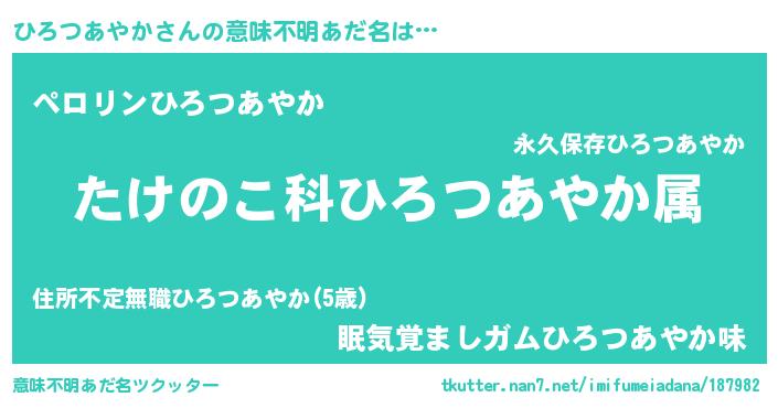 | 料理風あだ名 | 『ひろつあやかごはん』 |