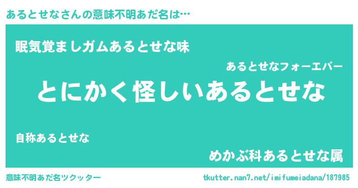 | ヘコむあだ名 | 『あるっ子』『豆乳』『あるにー』 |