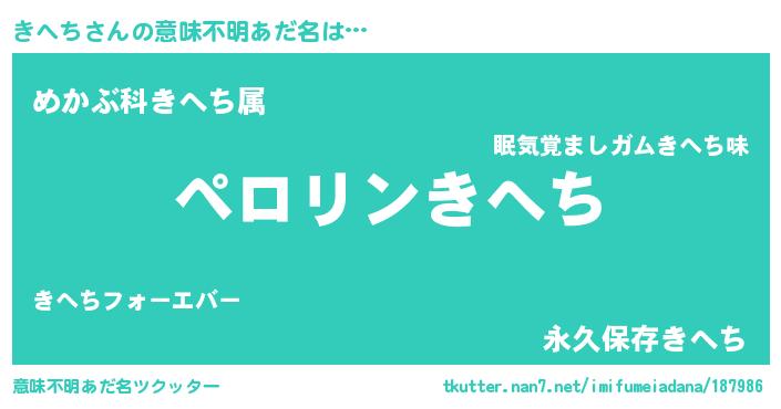 | ヘコむあだ名 | 『きへにゅー』『きへち(笑)』 |