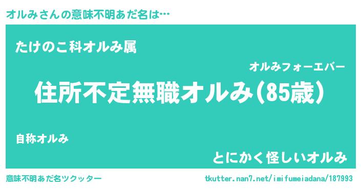 | 男性向けラノベタイトル風あだ名 | 『この素晴らしい世界にオルみを!』 |