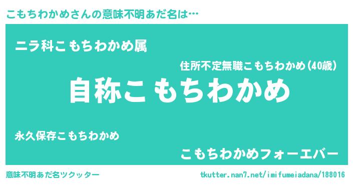 | ヒーロー風カッコイイあだ名 | 『サイバー戦士コモチワカメ』 |