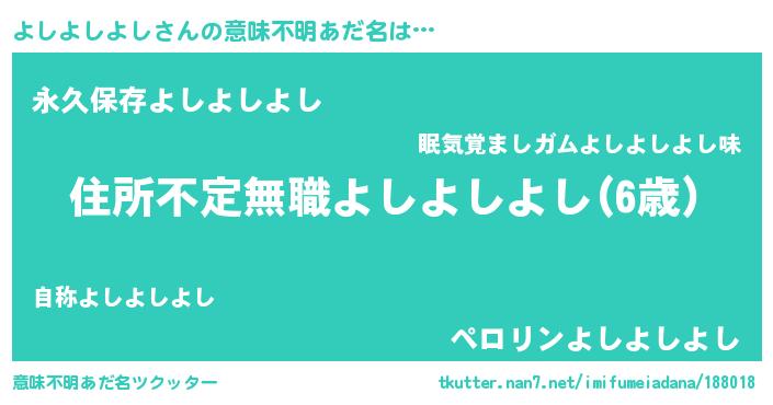| 料理風あだ名 | 『よしよしよしのカルパッチョ風』 |