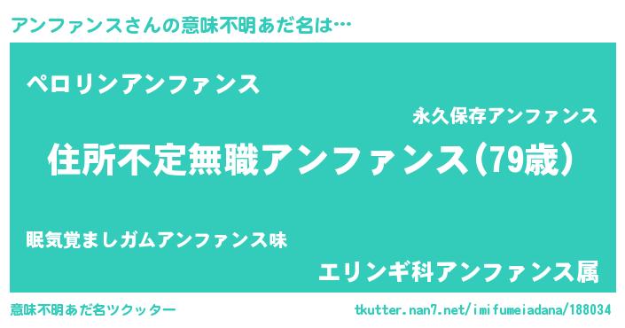 | 男性向けラノベタイトル風あだ名 | 『この素晴らしい世界にアンファンスを!』 |
