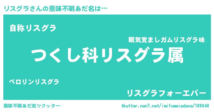 | ヒーロー風カッコイイあだ名 | 『最強戦士リスグラ』『愛の使者リスグラ』 |