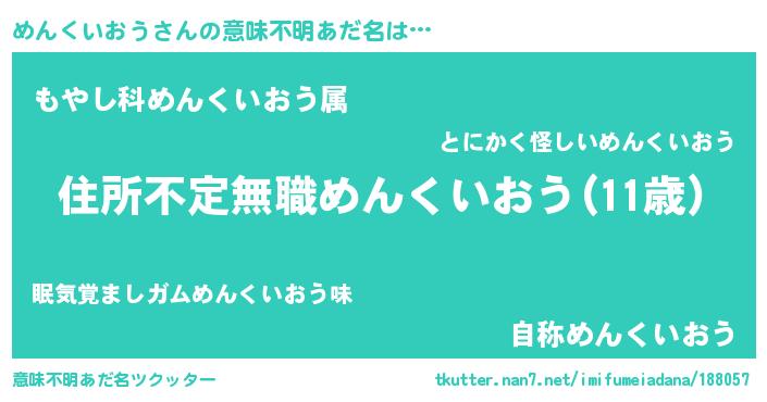 | ヘコむあだ名 | 『めんを』『なまこ酢』『めんにゅー』 |