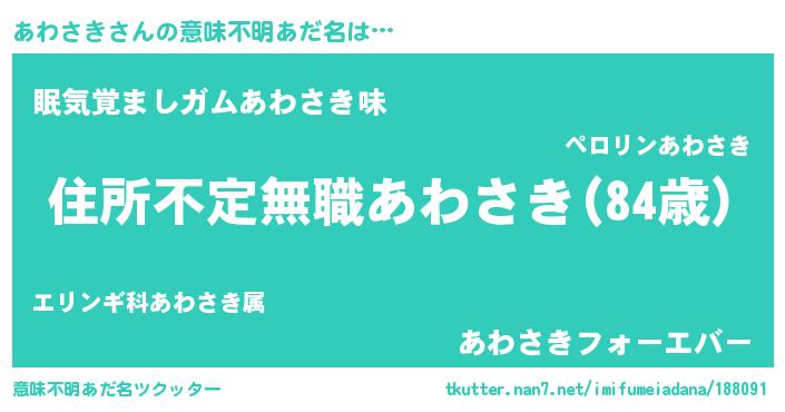 | ヘコむあだ名 | 『豆乳』『あわにゅー』『あわっぺ』 |