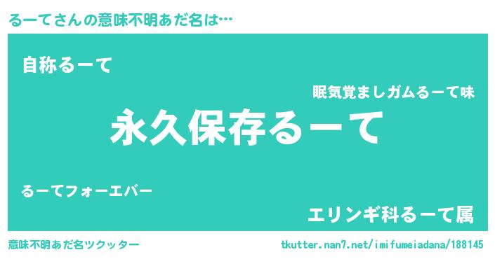 | 男性向けラノベタイトル風あだ名 | 『るーてという概念が存在しない退屈な世界 』 |