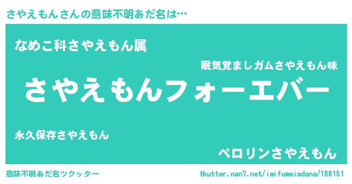 | 男性向けラノベタイトル風あだ名 | 『うちのさやえもんが世界を掌握している!』 |