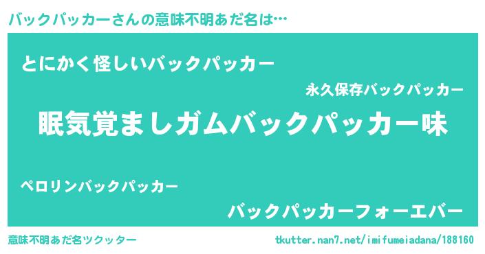 | 胡散臭い通販商品みたいなあだ名 | 『100人中100人が認めたマグネット磁石…その名も「バックパッカー」』 |