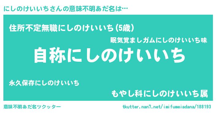 | 胡散臭い通販商品みたいなあだ名 | 『ガンによく効く冬虫夏草…その名も「にしのけいいち」』 |