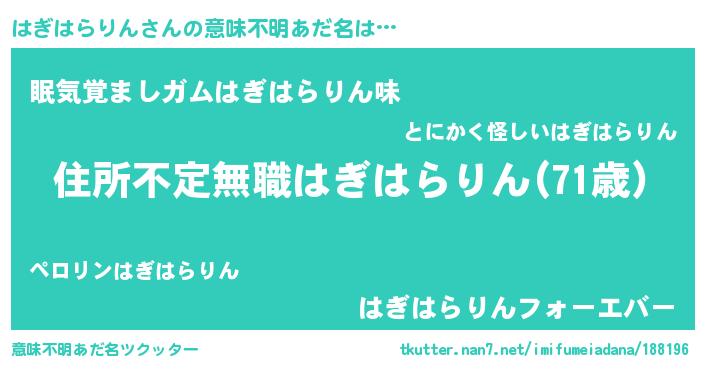 | 男性向けラノベタイトル風あだ名 | 『この素晴らしい世界にはぎはらりんを!』 |