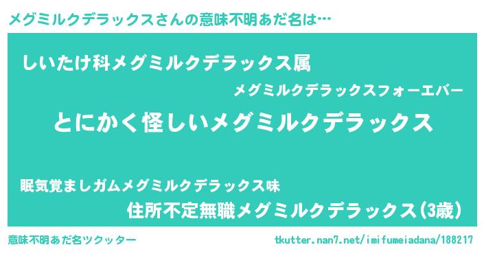 | 胡散臭い通販商品みたいなあだ名 | 『伝統あるペンダント…その名も「メグミルクデラックス」』 |