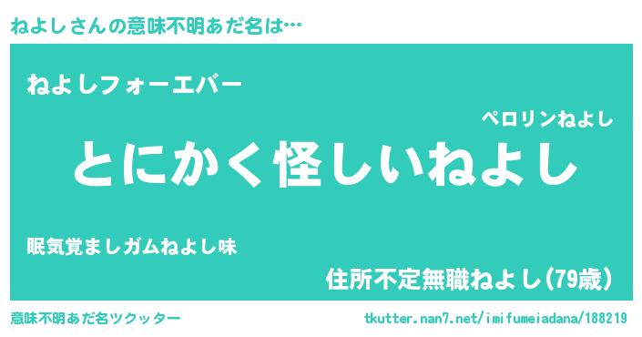 | 女子向けラノベタイトル風あだ名 | 『ねよしの卵を拾いまして』 |