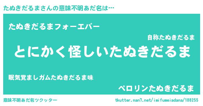 | 胡散臭い通販商品みたいなあだ名 | 『信頼と実績のサプリメント…その名も「たぬきだるま」』 |
