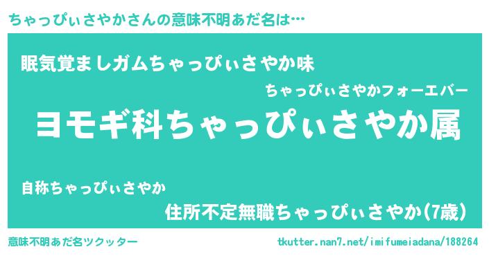 | 胡散臭い通販商品みたいなあだ名 | 『モンドセレクションを受賞した隕石のかけら…その名も「ちゃっぴぃさやか」』 |