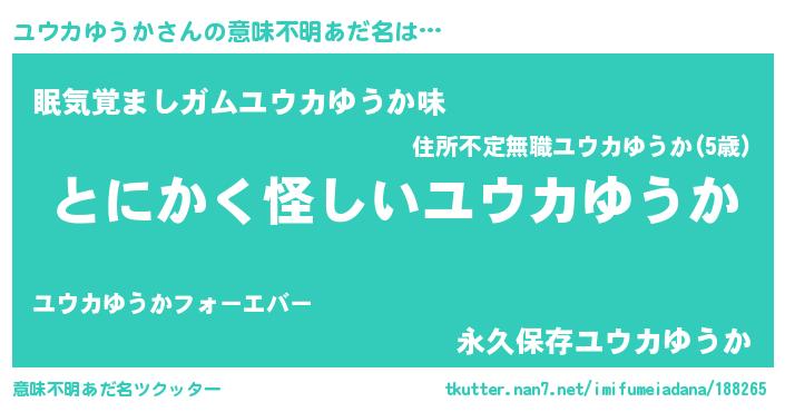 | ヒーロー風カッコイイあだ名 | 『炎刃騎士ユウ』『愛の使者ユウカゆうか』 |