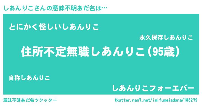 | 男性向けラノベタイトル風あだ名 | 『この素晴らしい世界にしあんりこを!』 |