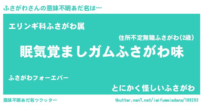 | ヒーロー風カッコイイあだ名 | 『天空の使者ふさがわ』『暗黒騎士フサ』 |