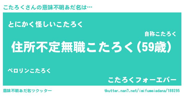 | 男性向けラノベタイトル風あだ名 | 『この素晴らしい世界にこたろくを!』 |