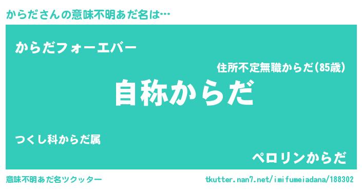 | 胡散臭い通販商品みたいなあだ名 | 『ガンによく効くアガリクス…その名も「からだ」』 |