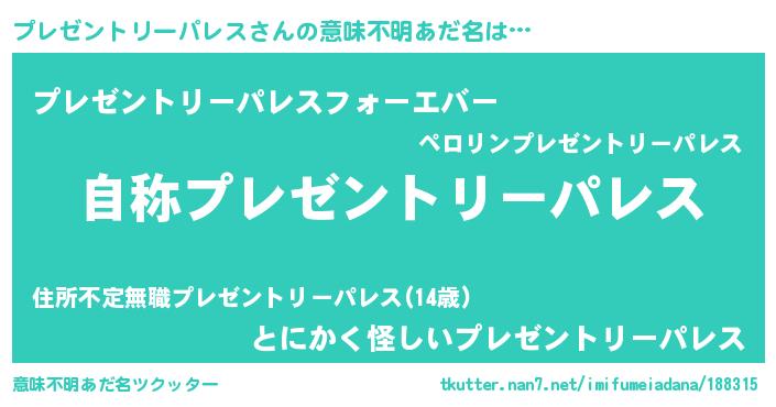 | 欧米人風あだ名 | 『アンジェラ・プレゼントリーパレス』 |