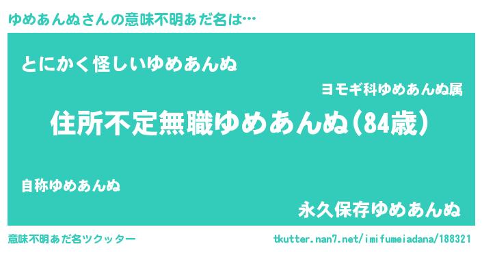 | ヘコむあだ名 | 『ゆめっちょ』『ゆめあんぬ(震え声)』 |