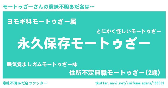 | 男性向けラノベタイトル風あだ名 | 『モートゥざーという概念が存在しない退屈な世界 』 |