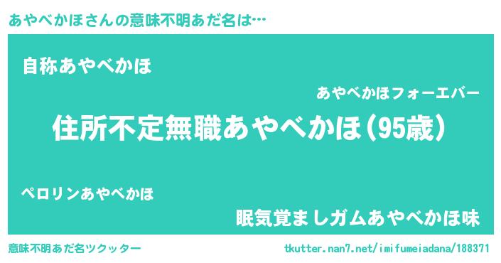| 胡散臭い通販商品みたいなあだ名 | 『あなたにだけ特別に提供する世界で10本だけ現存している希少なブランデー…その名も「あやべかほ」』 |