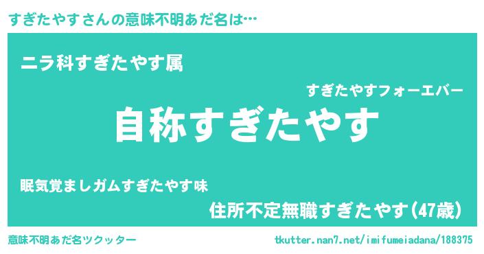 | ヒーロー風カッコイイあだ名 | 『ウルトラ戦士スギタヤス』 |