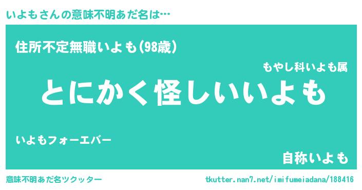 | 欧米人風あだ名 | 『ウサインいよも』『ダレノガレいよも』 |