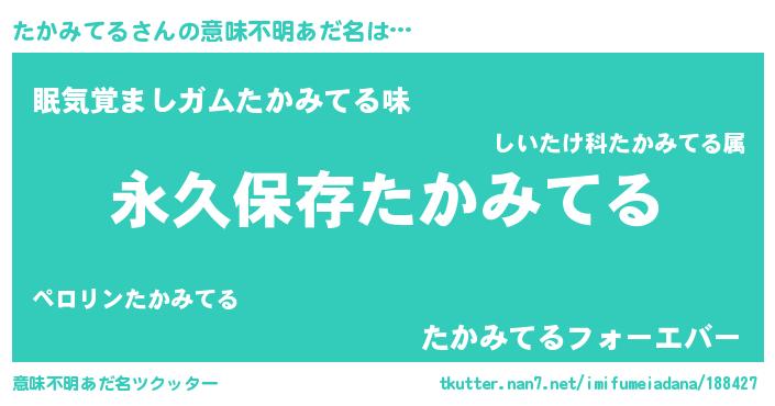 | 欧米人風あだ名 | 『たかみてる・ステッグマイヤー』 |
