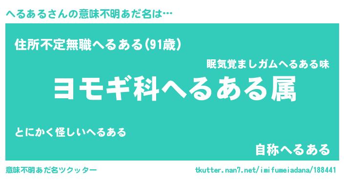 | 男性向けラノベタイトル風あだ名 | 『へるある~年齢イコール彼女いない歴の魔法使い~』 |