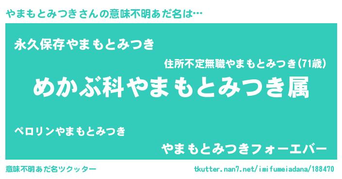 | 胡散臭い通販商品みたいなあだ名 | 『絶対に幸福をもたらす健康食品…その名も「やまもとみつき」』 |