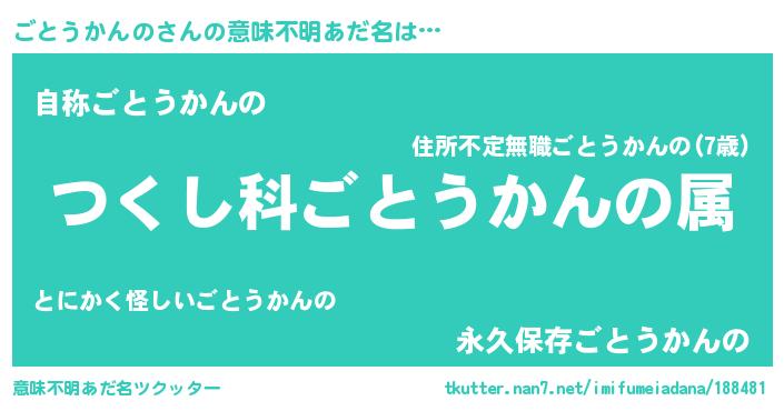 | 男性向けラノベタイトル風あだ名 | 『うちのごとうかんのが世界を掌握している!』 |