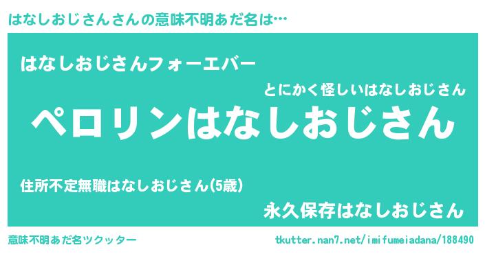 | 男性向けラノベタイトル風あだ名 | 『うちのはなしおじさんが世界を掌握している!』 |